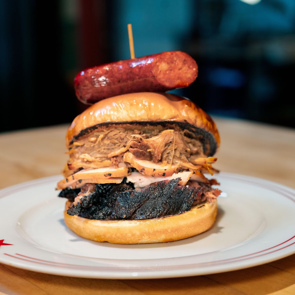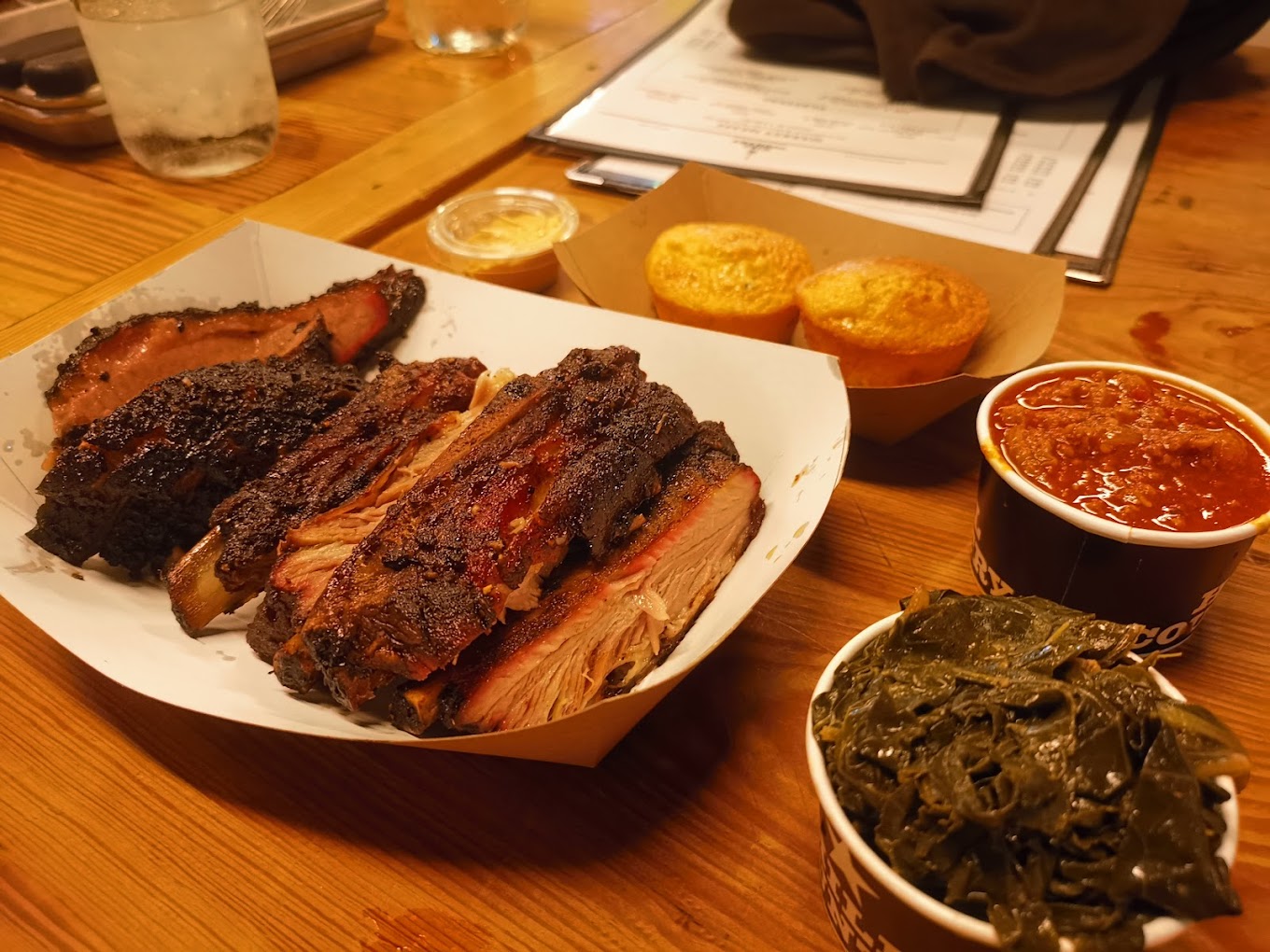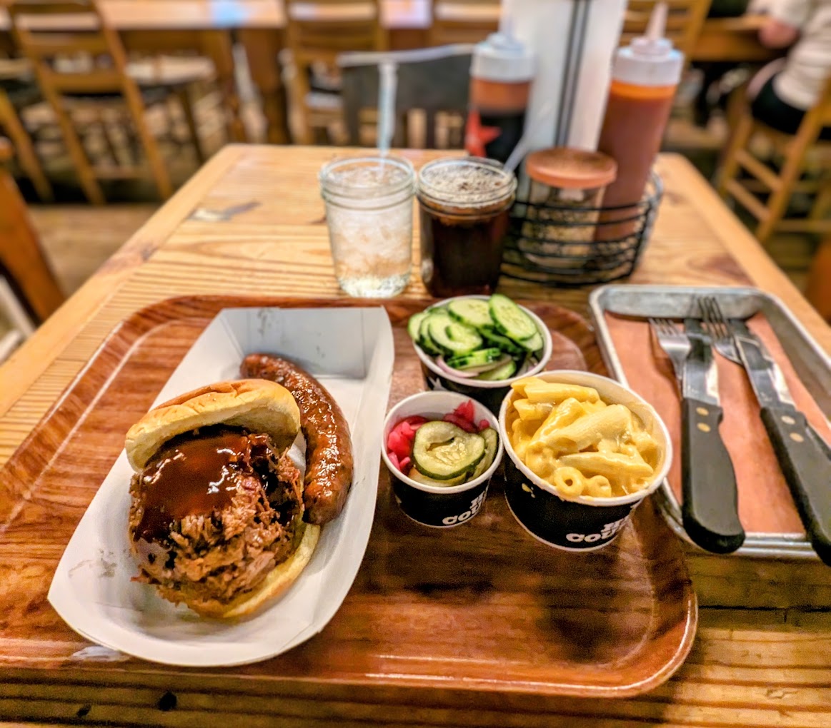 Texas BBQ & beer are served in a rustic-chic, cafeteria-style setup, with regular live music.