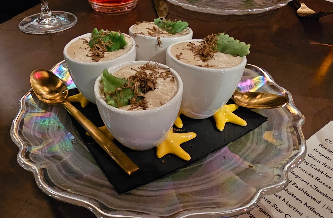 Elegant Italian restaurant with chandeliers and a gold-plated pizza oven firing signature pies.