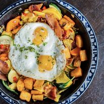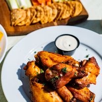 Restaurant - Braised Short Rib, Sauteed Onions, Cheddar Cheese, BBQ Sauce on Rye Bread, Served with Potato Chips